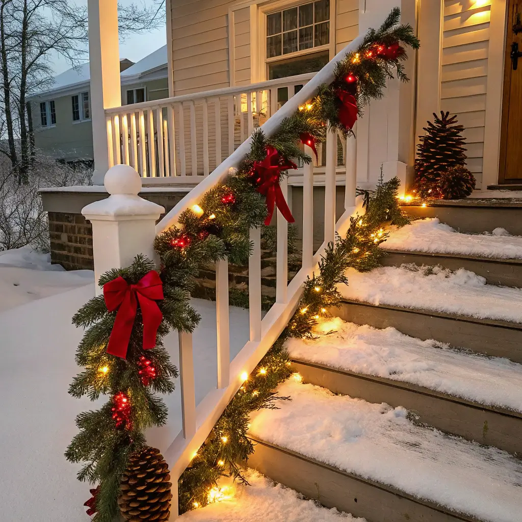 Position these along your porch railings, around doorways, or even wrapped around pillars. They add instant festivity without the commitment of permanent decorations.
