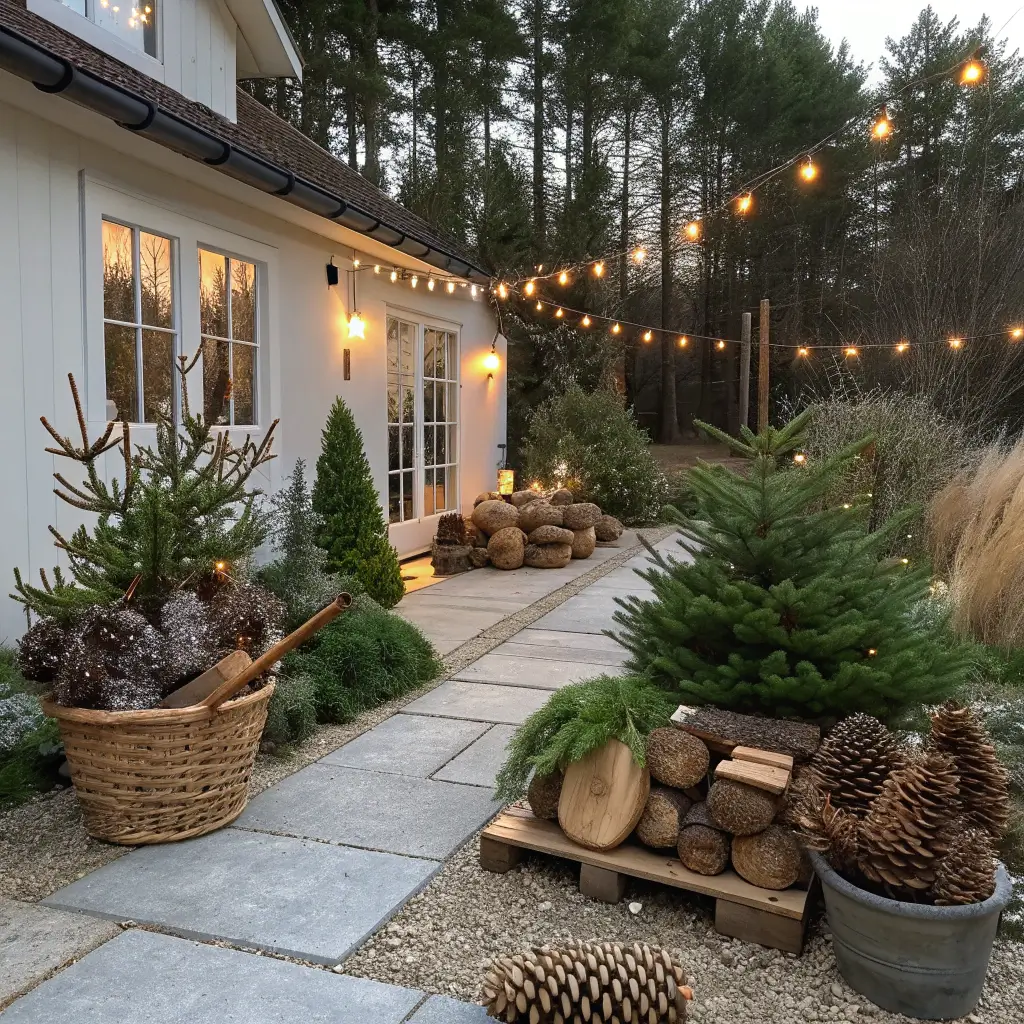 I use white birch branches in tall urns flanking my entrance, wrapped with warm white micro-lights. A simple evergreen wreath with white berries on the door. The entire display whispers rather than shouts, but people always comment on how sophisticated it looks.