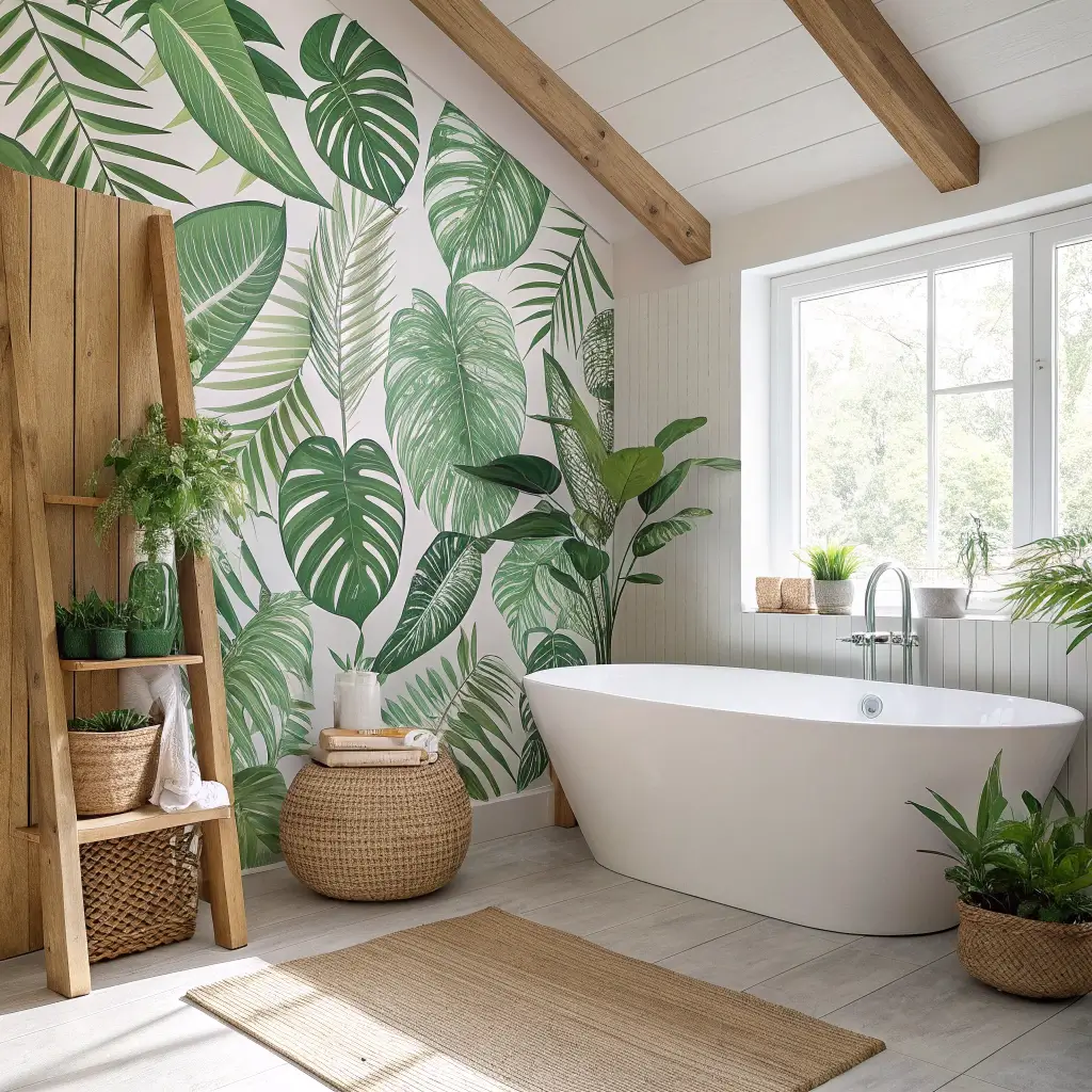 3. Tropical Leaf Patterns for a Fresh Bathroom Look