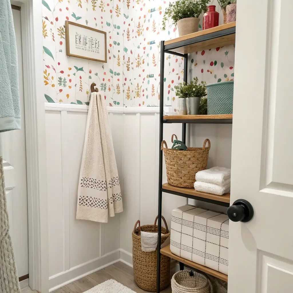 • Peel and stick wallpaper works in bathrooms – with proper ventilation and avoiding direct water exposure