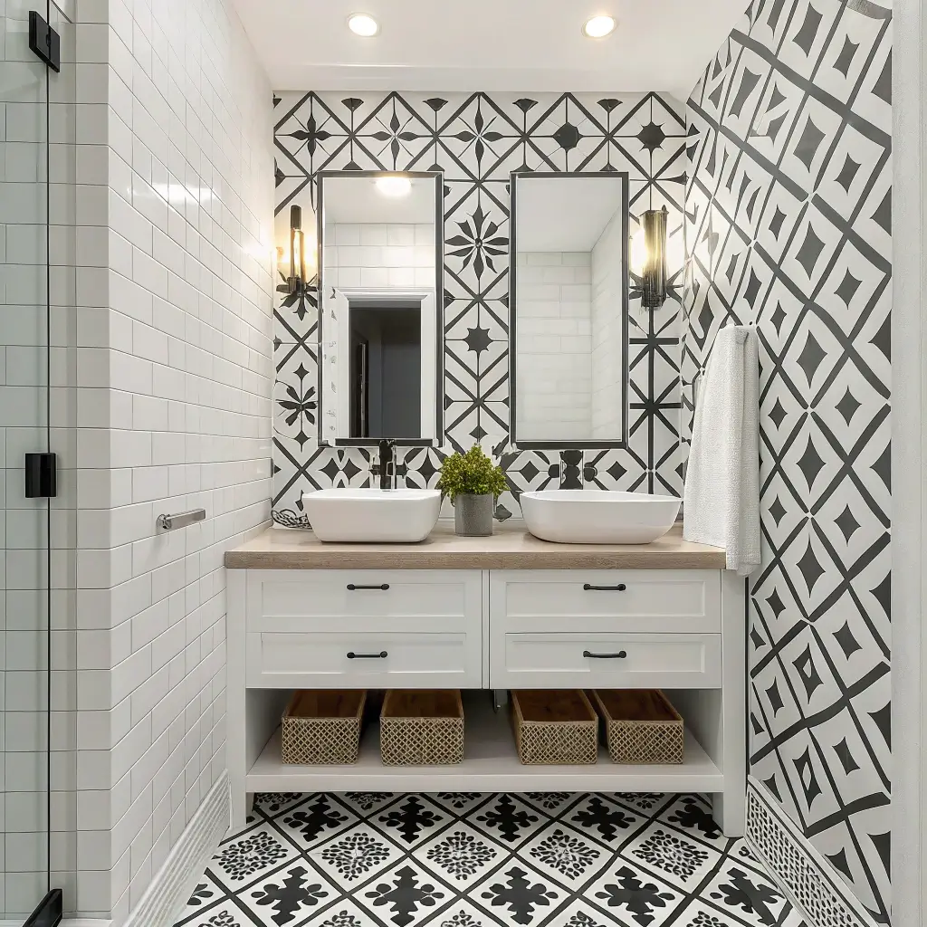 There’s something incredibly satisfying about geometric patterns. Maybe it’s the mathematician in me (okay, I failed algebra twice, but still), or maybe it’s just that clean lines and sharp angles make a bathroom feel intentionally designed rather than accidentally decorated.