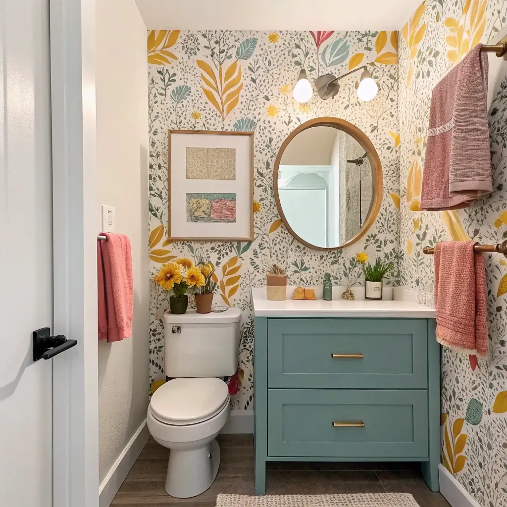 6. Colorful Floral Bathroom Wallpaper Transformations