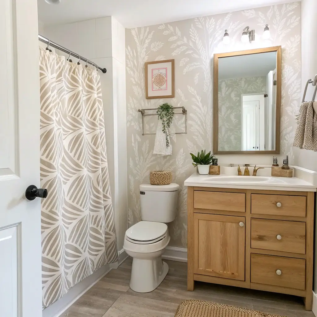 15. Spa-Like Bathroom Retreat with Peel and Stick Wallpaper
