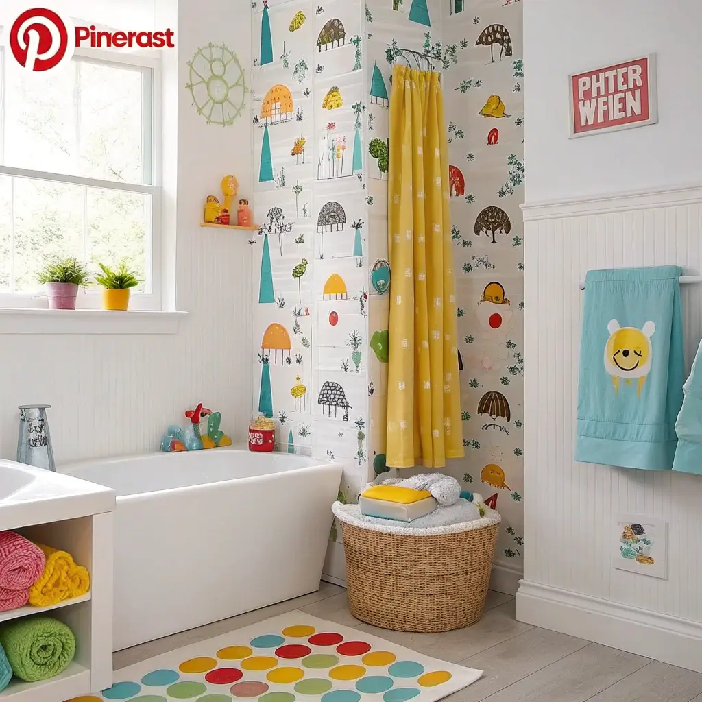 13. Cute Kids’ Bathroom Peel and Stick Wallpaper Ideas