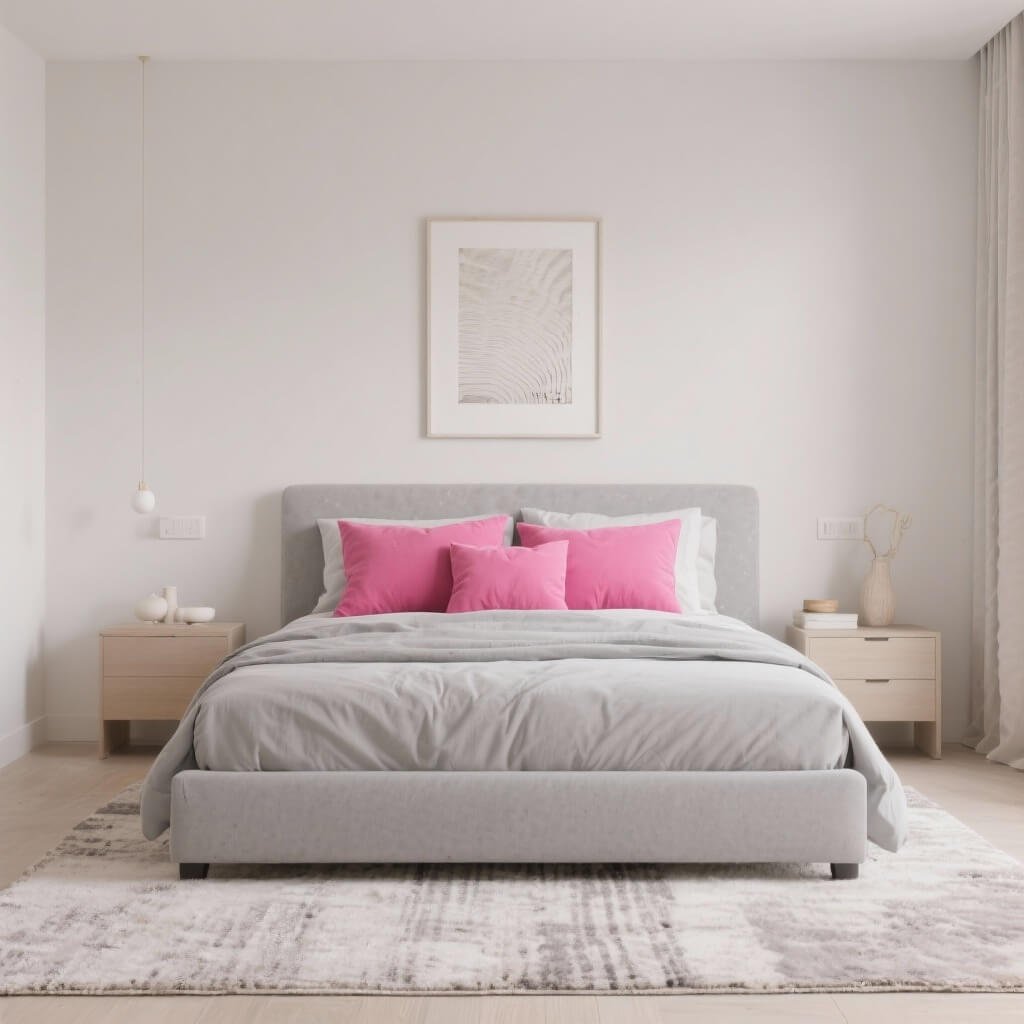 The pink and grey combination never goes out of style because it just works. Grey grounds the sweetness of pink, creating a sophisticated palette that grows with you. This combo saved me from complete bedroom overhauls every few years.