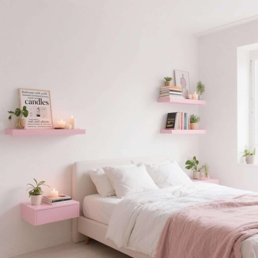Pink minimalist shelving proves that functional can be beautiful. These pieces add storage without visual clutter, and the pop of pink keeps them from boring. I installed floating pink shelves last year, and they’re still my favorite bedroom addition.