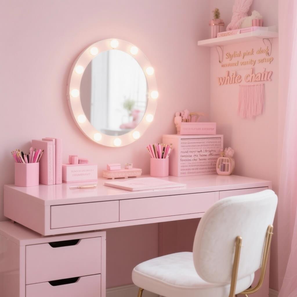 Pink Desk and Vanity Setup