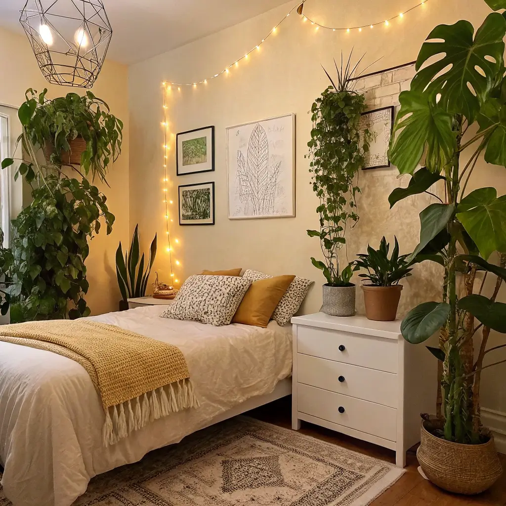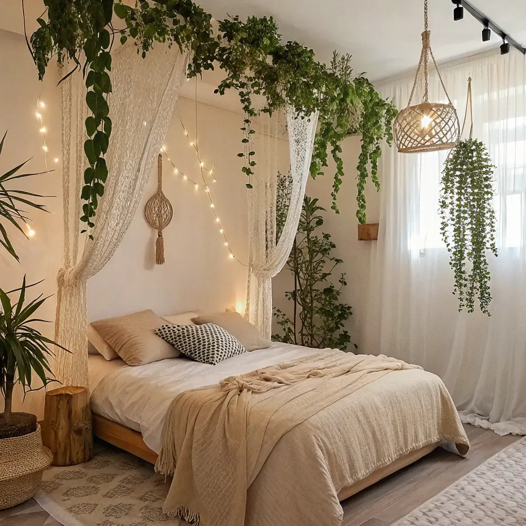 2. Boho Chic Plant Bedroom Vibes