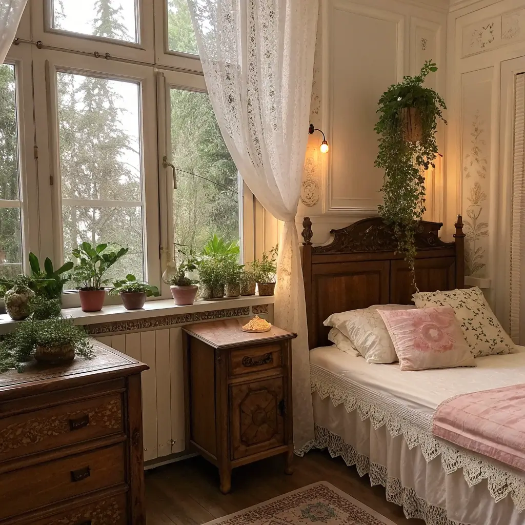 My favorite bedroom piece is an antique plant stand I found at an estate sale for $25. It’s got this gorgeous curved metalwork, and with a trailing pothos on top, it looks like something from a vintage greenhouse. Mixing eras creates visual interest—don’t be afraid to pair that antique stand with a modern geometric pot.