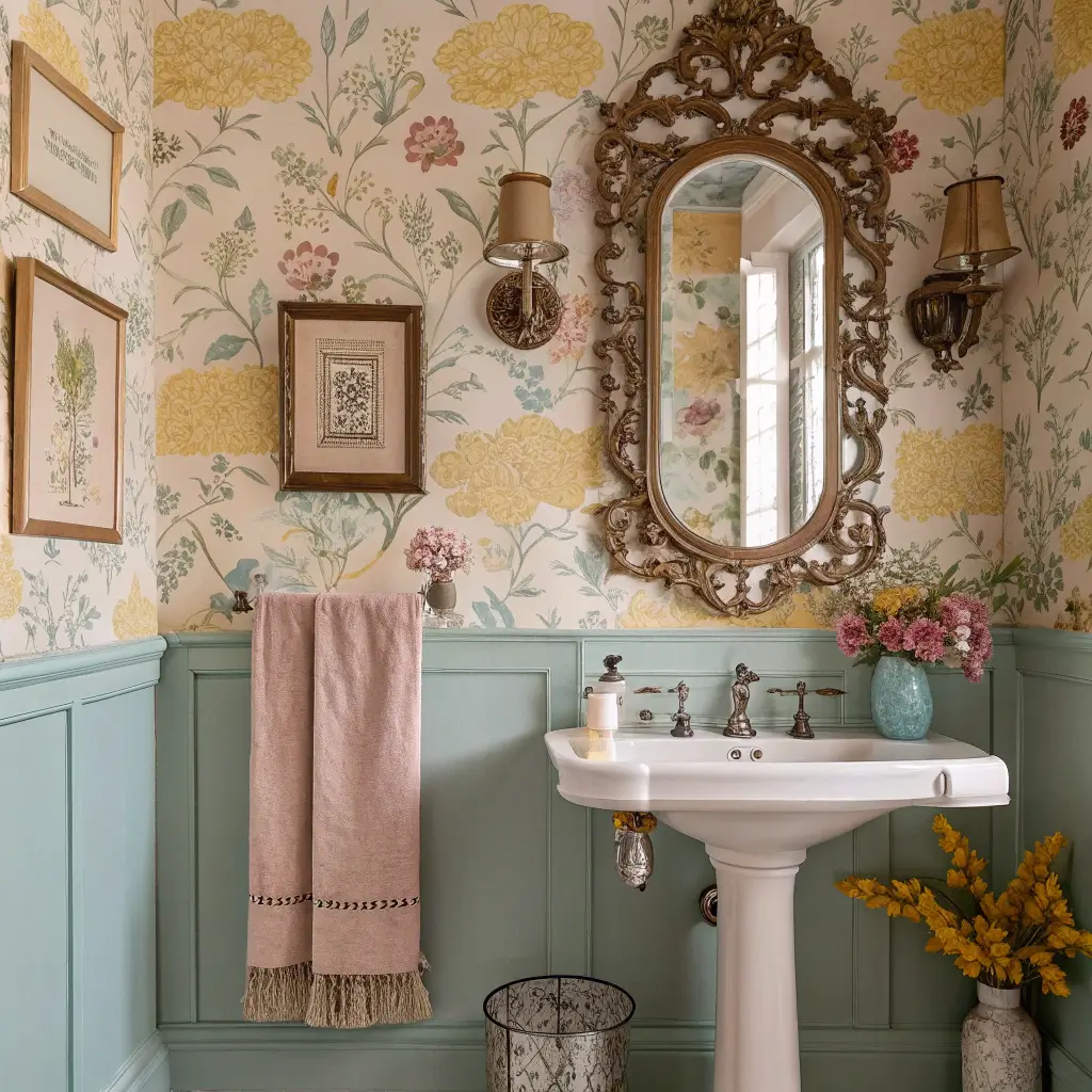 There’s something magical about walking into a powder room that feels like stepping back in time. Maybe it’s the nostalgia factor, or maybe vintage patterns just have more soul. Either way, they work beautifully in small spaces.