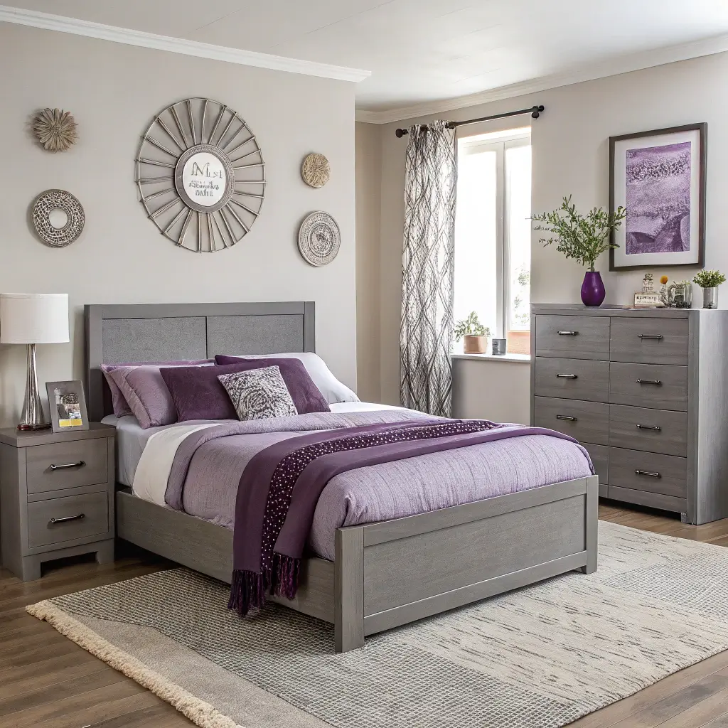 The best part about purple and grey bedrooms? They grow with you. Start with grey basics and small purple accents, then add more purple as your confidence builds. Made a purple mistake? Grey’s got your back – it neutralizes almost anything.
