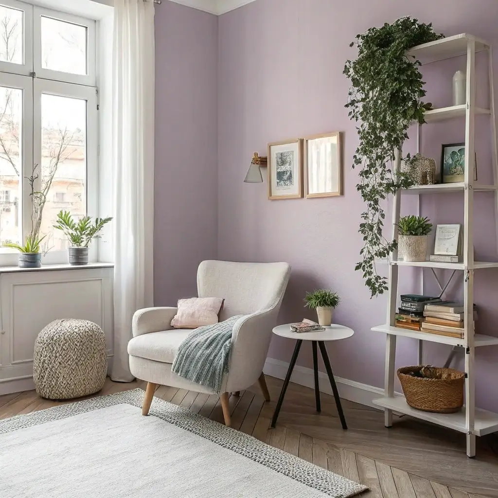 15. Minimalist Lavender Bedroom Corner