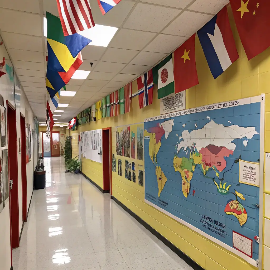 Each section represents different cultures present in your school. Students and families contribute artifacts, photos, and stories. We included QR codes linking to students reading greetings in their native languages. The pride on kids’ faces when classmates stop to learn about their heritage? Priceless.