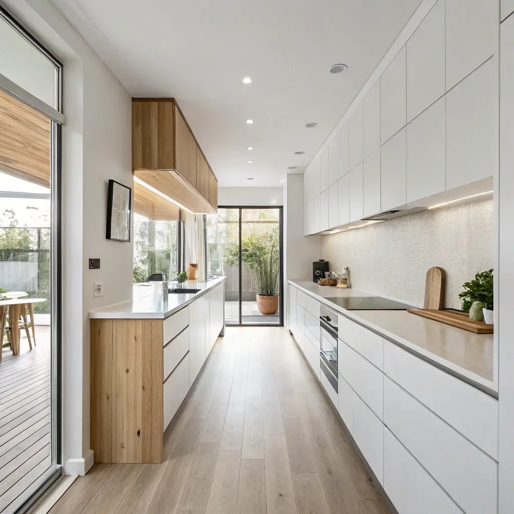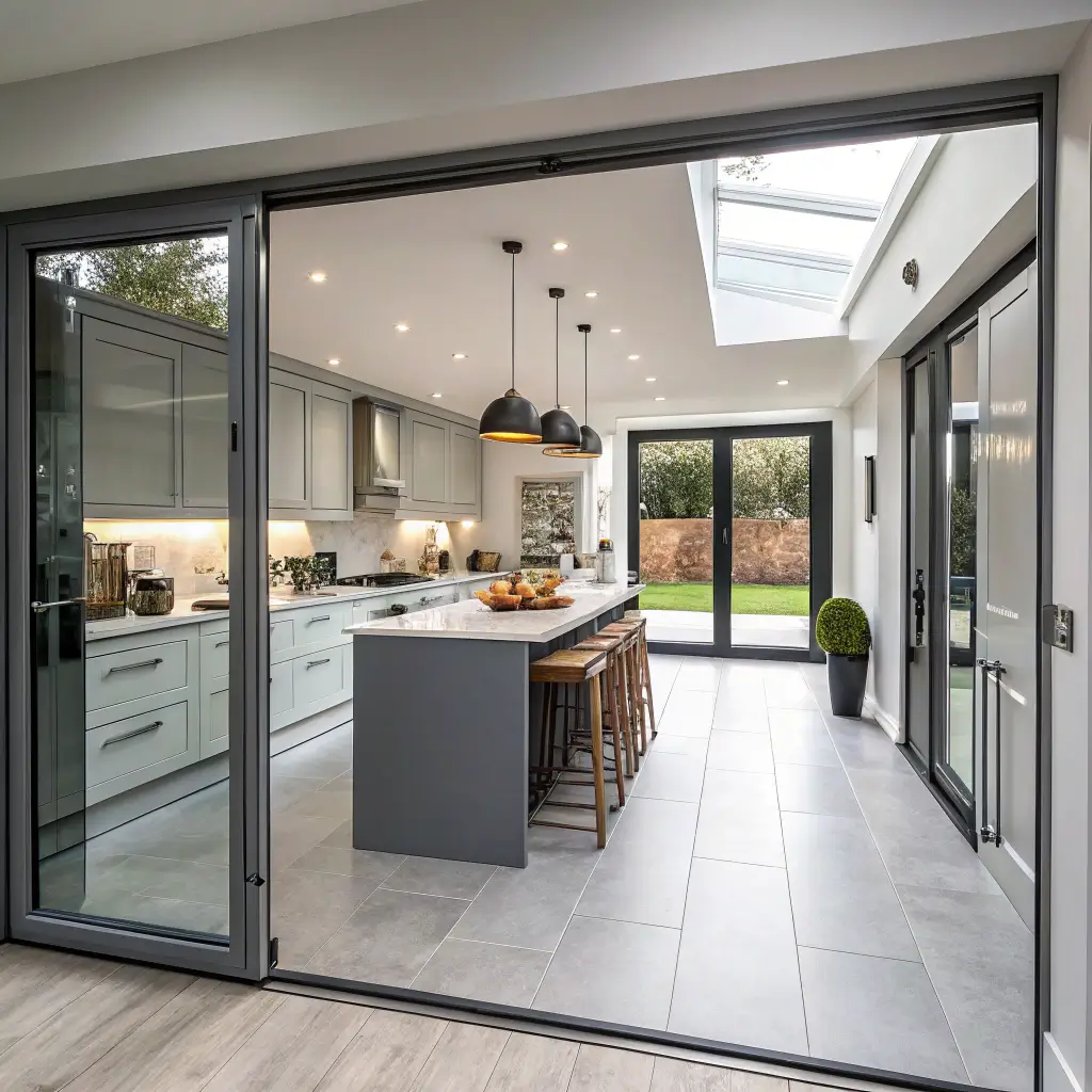 Sliding doors offer unmatched versatility. During a dinner party, slide them open and your kitchen becomes part of the entertainment space. When you’re batch-cooking for the week and the kitchen resembles a war zone, slide them closed and problem solved.
