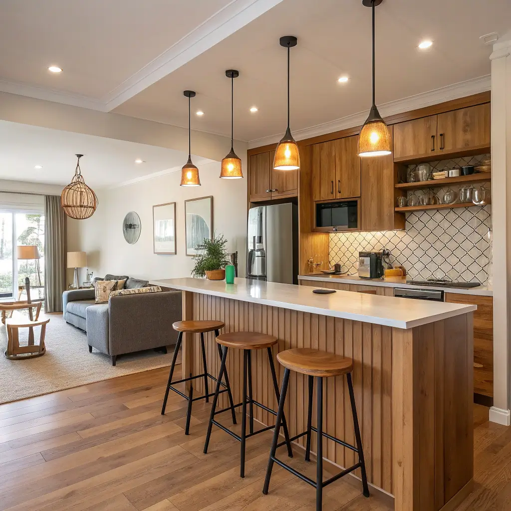 Nothing says “casual elegance” quite like a breakfast bar that connects your kitchen to your living space. It’s social, it’s functional, and when designed right, it’s a storage beast.