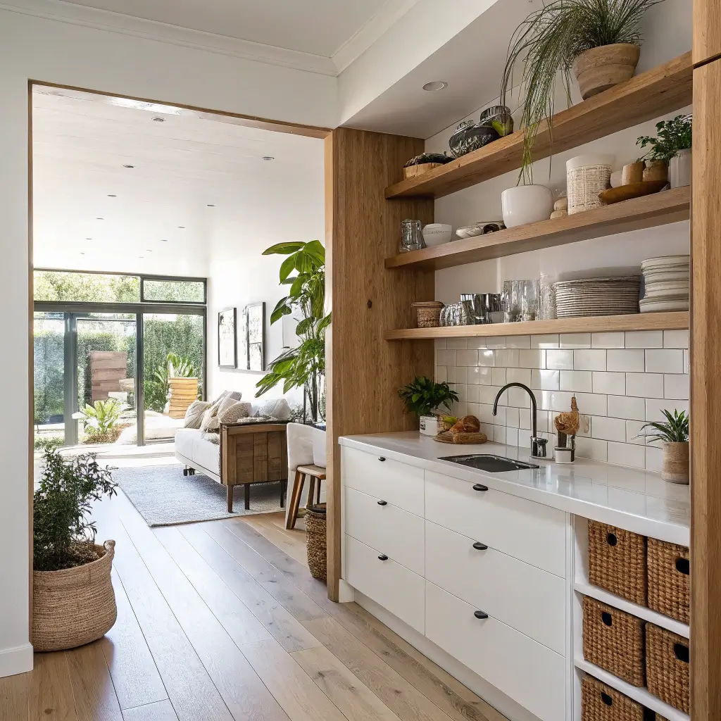 Here’s where personal taste really shines. Your open shelves become a display opportunity—but be strategic about what you put on them. Mix functional items (cookbooks, pretty dishes, potted herbs) with decorative pieces (plants, artwork, candles) for a balanced look.