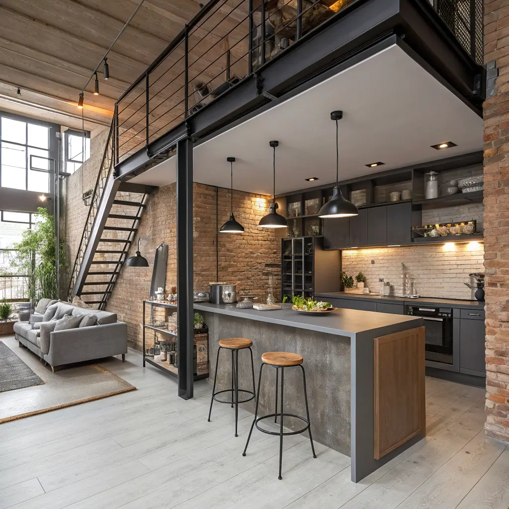 Pure industrial can feel cold or unfinished. The trick is balancing rough elements with warmth. Add wooden cutting boards, woven baskets, and live plants to soften the look. Warm Edison-bulb lighting creates ambiance that raw overhead fixtures can’t match.
