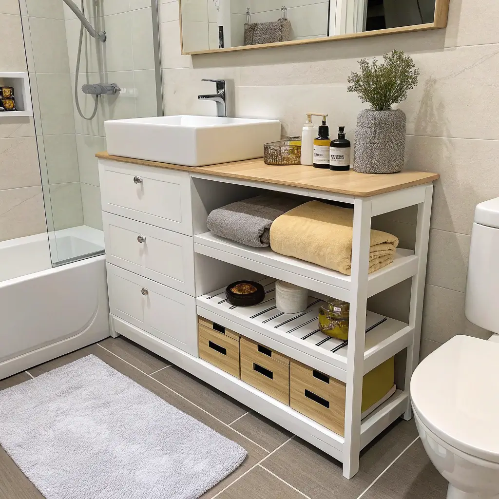 Storage in a small bathroom is like finding parking downtown—frustrating, competitive, and absolutely essential to get right.