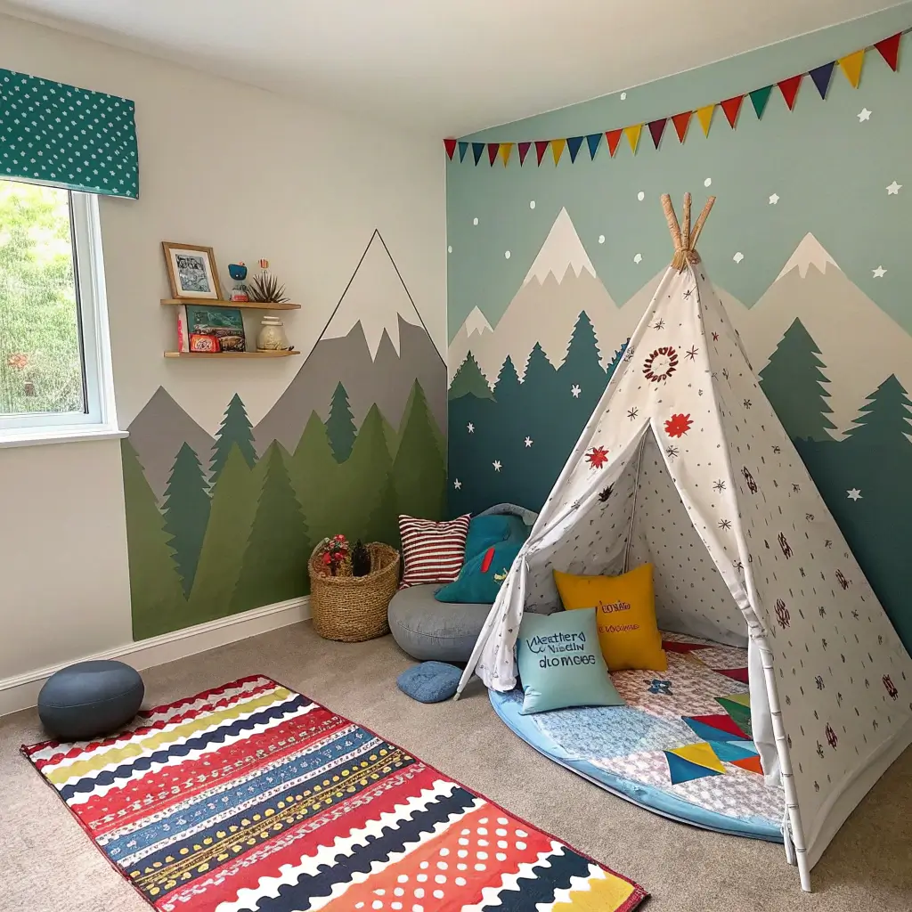 Remember building blanket forts? Same energy, but permanent. A small pop-up tent or teepee in the corner creates an instant cozy zone. Throw in some pillows, string lights, and a basket of books. Reading nook achieved in under 10 square feet.