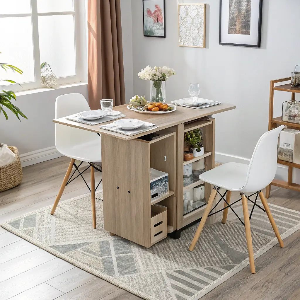 Drop-leaf tables changed my life – dramatic, but true. Mine stays compact for daily meals but expands when friends come over. Takes literally 30 seconds to transform from a two-person breakfast spot to a six-person dinner party setup.