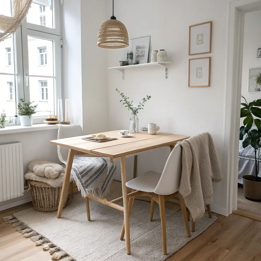 The Scandi formula works every time: white walls + natural wood + simple lines + cozy textiles = perfection. My dining area follows this religiously, and guests always comment on how spacious it feels.
