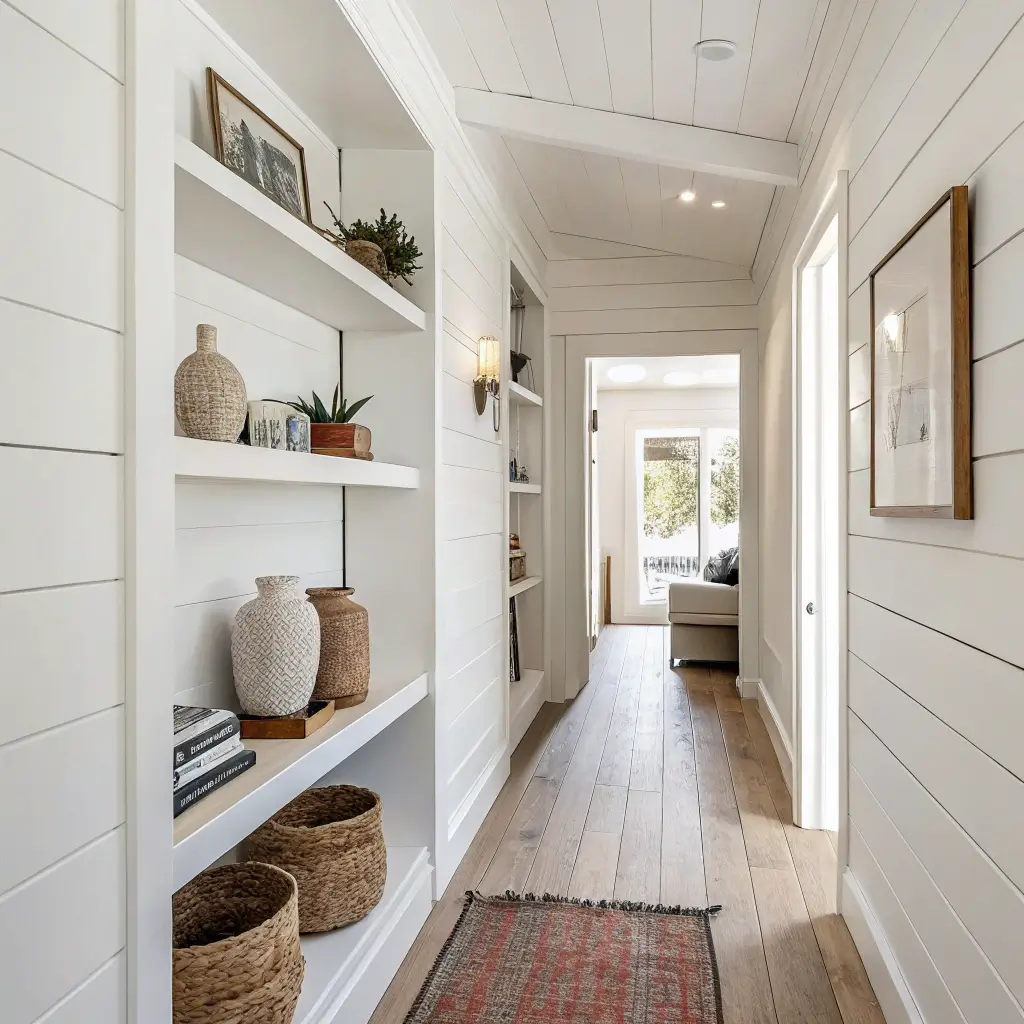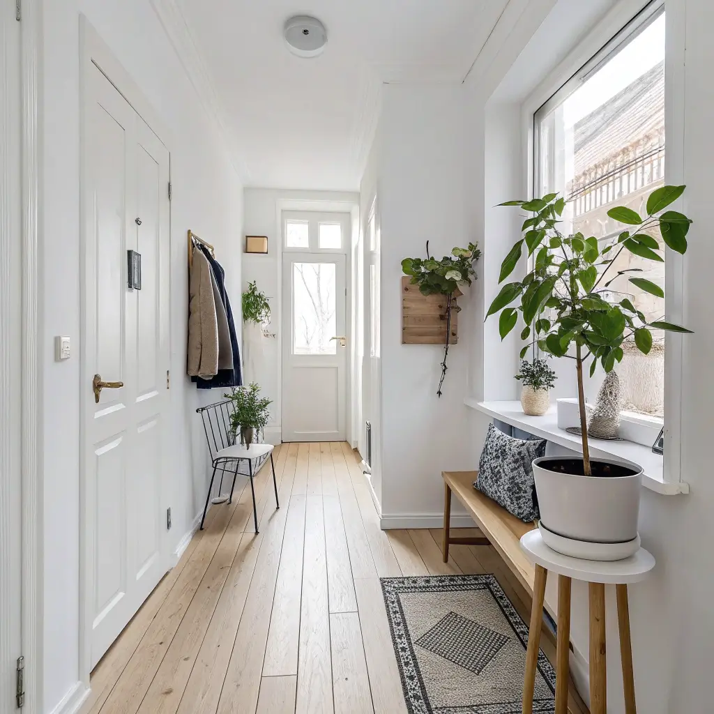 Keep decorative elements minimal but meaningful. A single piece of driftwood on a shelf, one perfectly placed plant, or a simple wooden stool can complete the look. The goal? Making your hallway feel like a breath of fresh air, not a sterile passageway.