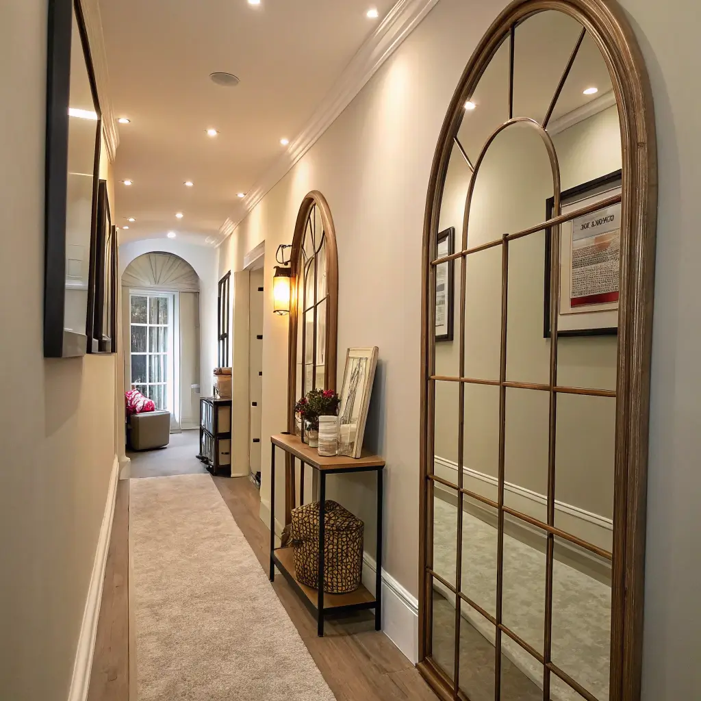 Position your arch mirror strategically. I placed mine at the end of my hallway, creating a focal point that draws visitors forward. The curve mimics a doorway, suggesting space beyond what actually exists.