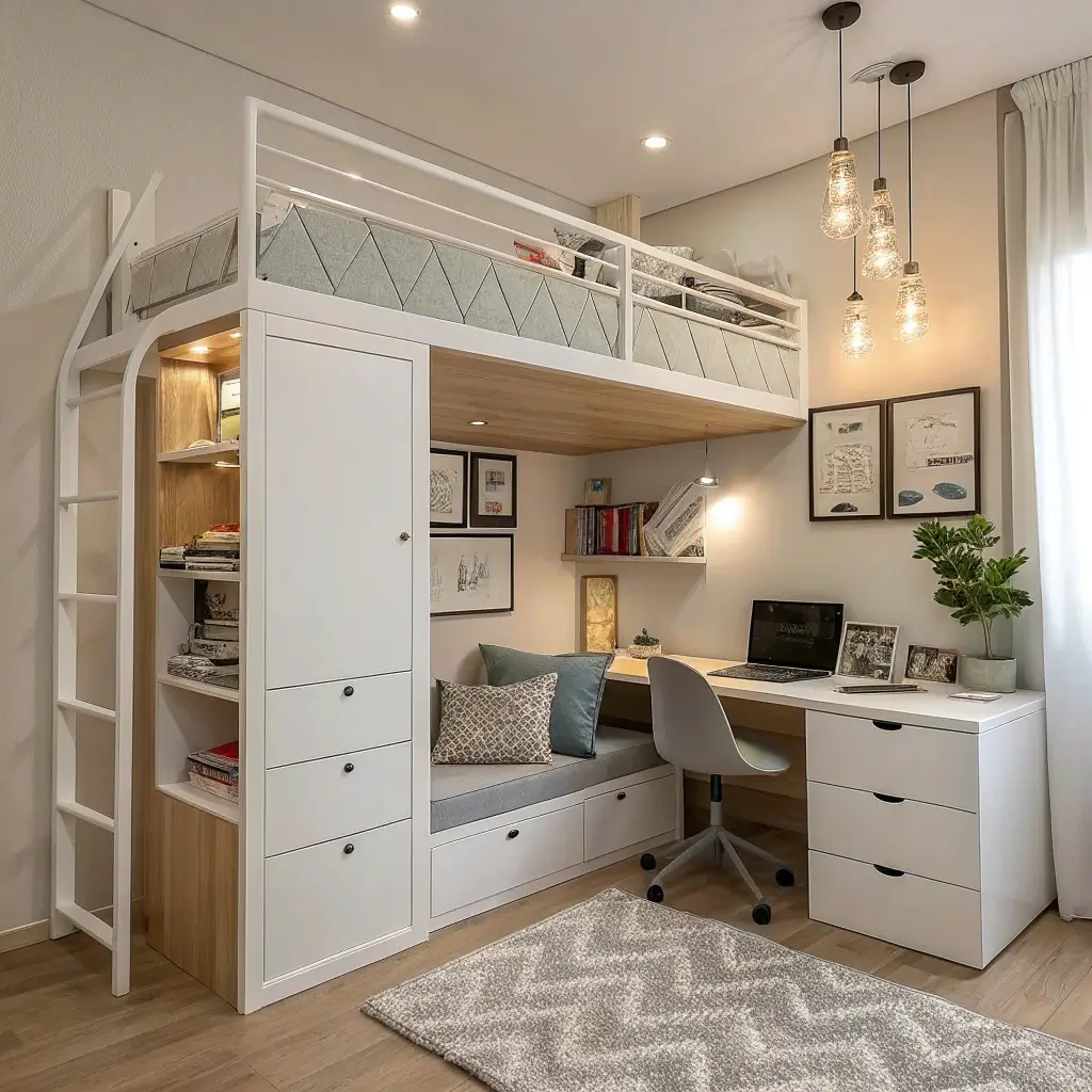 If your bedroom is under 100 square feet, a loft bed might genuinely change your life. You’re essentially doubling your usable floor space by stacking functions vertically.