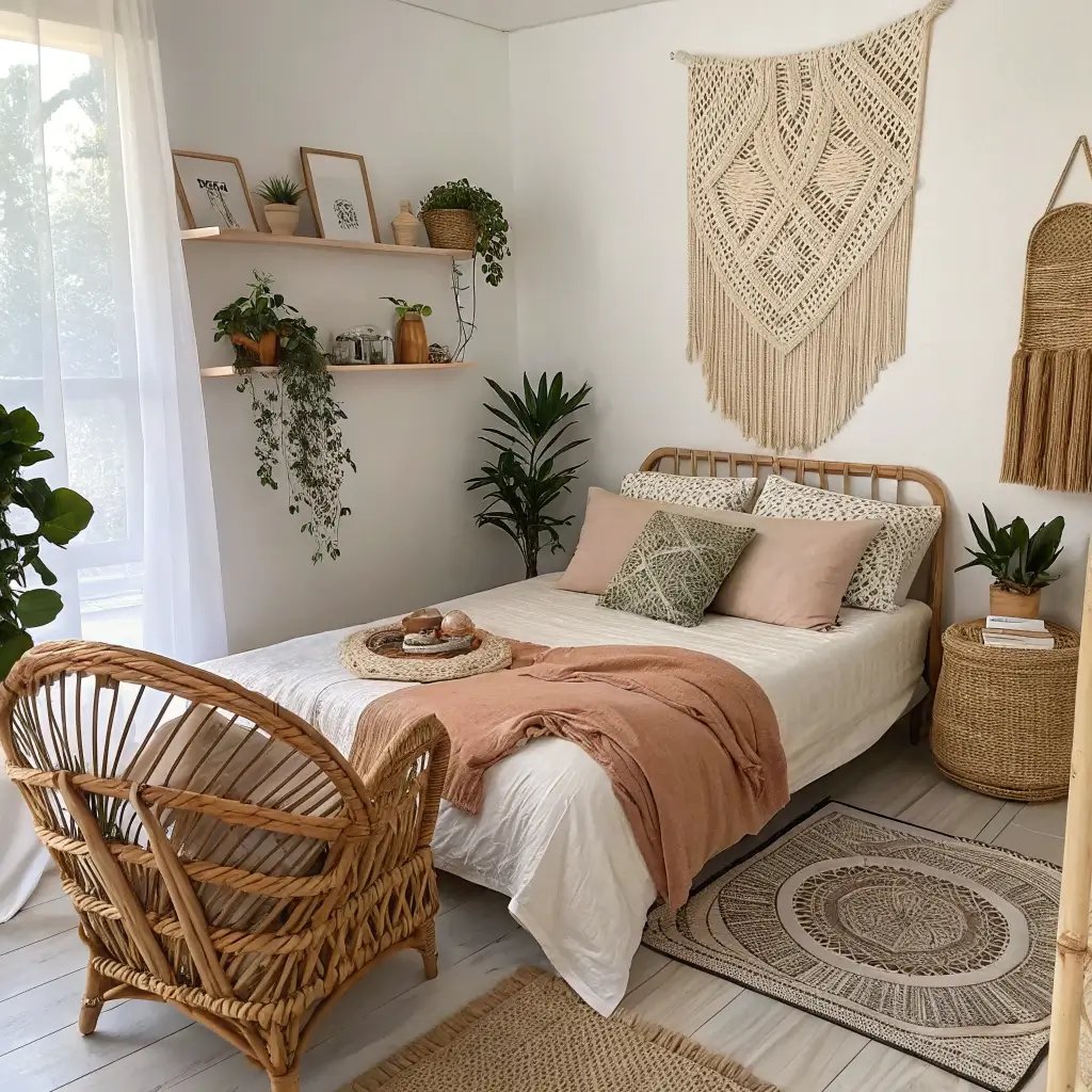 In a tiny bedroom, that approach equals chaos. Instead, aim for “boho lite”—the warmth and personality of bohemian style with disciplined restraint.