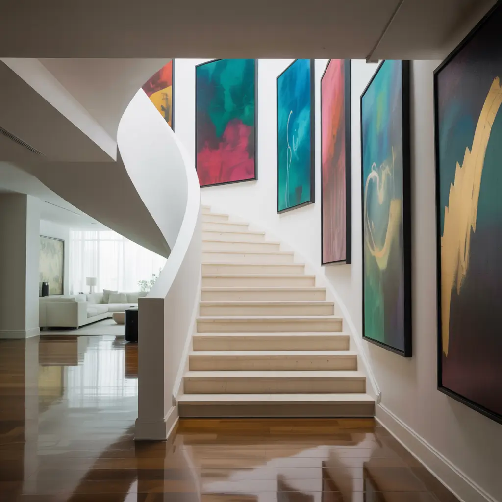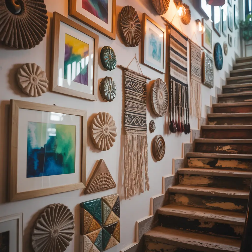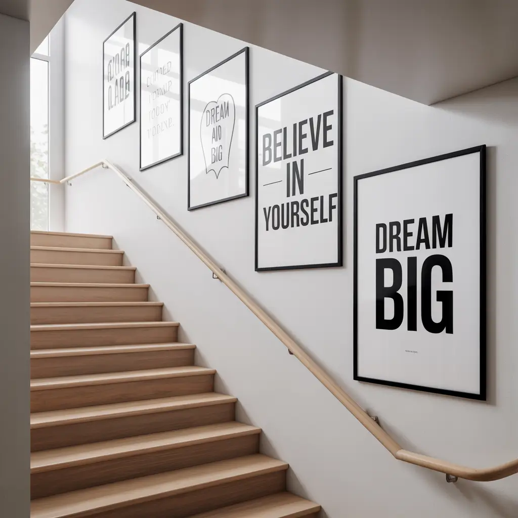 Whether you go minimal with line art or maximal with mixed media, the perfect staircase wall decor is the one that makes you smile every time you climb those stairs.