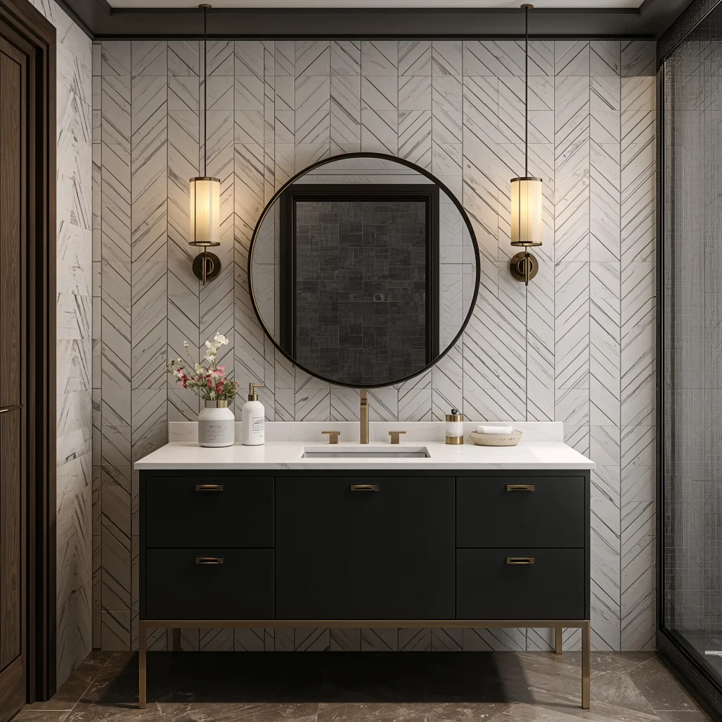 My current favorite combo? Standard brick pattern on most walls with a herringbone accent behind the vanity. It’s unexpected without being chaotic, and it definitely makes the bathroom more interesting.