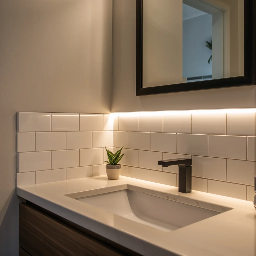 I extended my backsplash all the way to the ceiling in my powder room, creating a dramatic focal point. The extra tiles cost maybe $50, but the impact was huge.