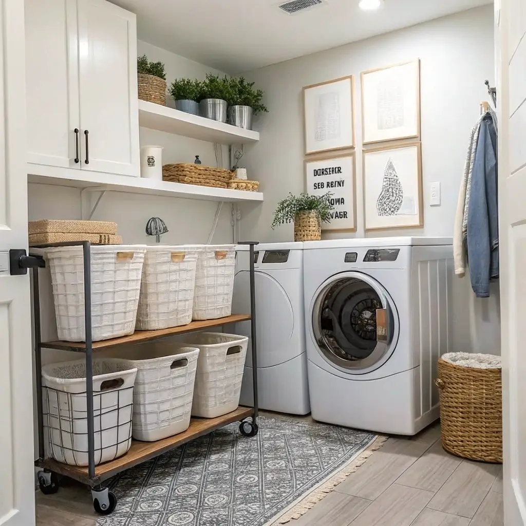 Think of these as the Swiss Army knives of laundry organization. A good rolling cart serves as storage, folding surface, and mobile supply station all in one. The keyword here? Mobile. You can wheel it wherever you need it, then tuck it away when you don’t.