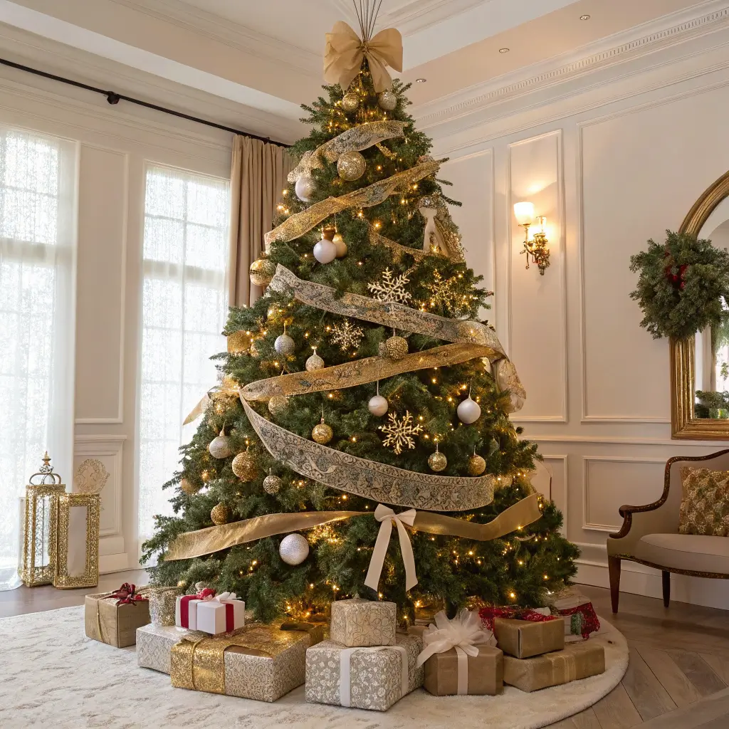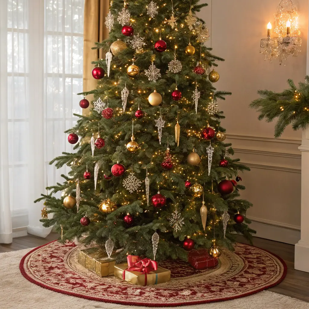 Victorian trees embrace the “more is more” philosophy. Layer ornaments deeply into the tree, use multiple garland types, and don’t shy away from tinsel. I add velvet ribbons, pearl garlands, and those gorgeous glass ornaments with intricate paintings.