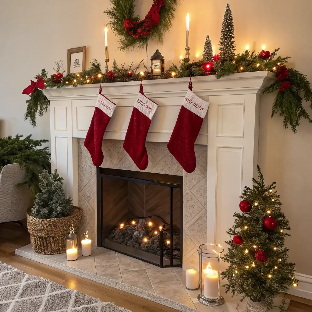 I layer fresh garland as my base (the smell alone is worth it), then build from there. Brass candlesticks of varying heights create drama, while traditional stockings add that homey touch we’re after. The key is creating a scene that looks effortlessly elegant, not like you tried too hard.