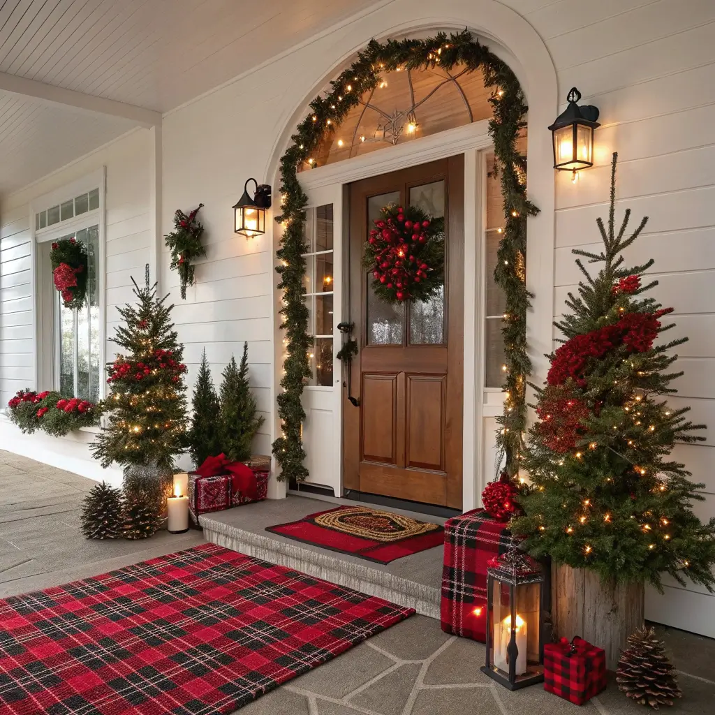 First impressions matter, and your entryway sets the tone for your entire home’s holiday vibe. Red plaid patterns instantly signal “Christmas is here” while maintaining that timeless appeal we’re after.