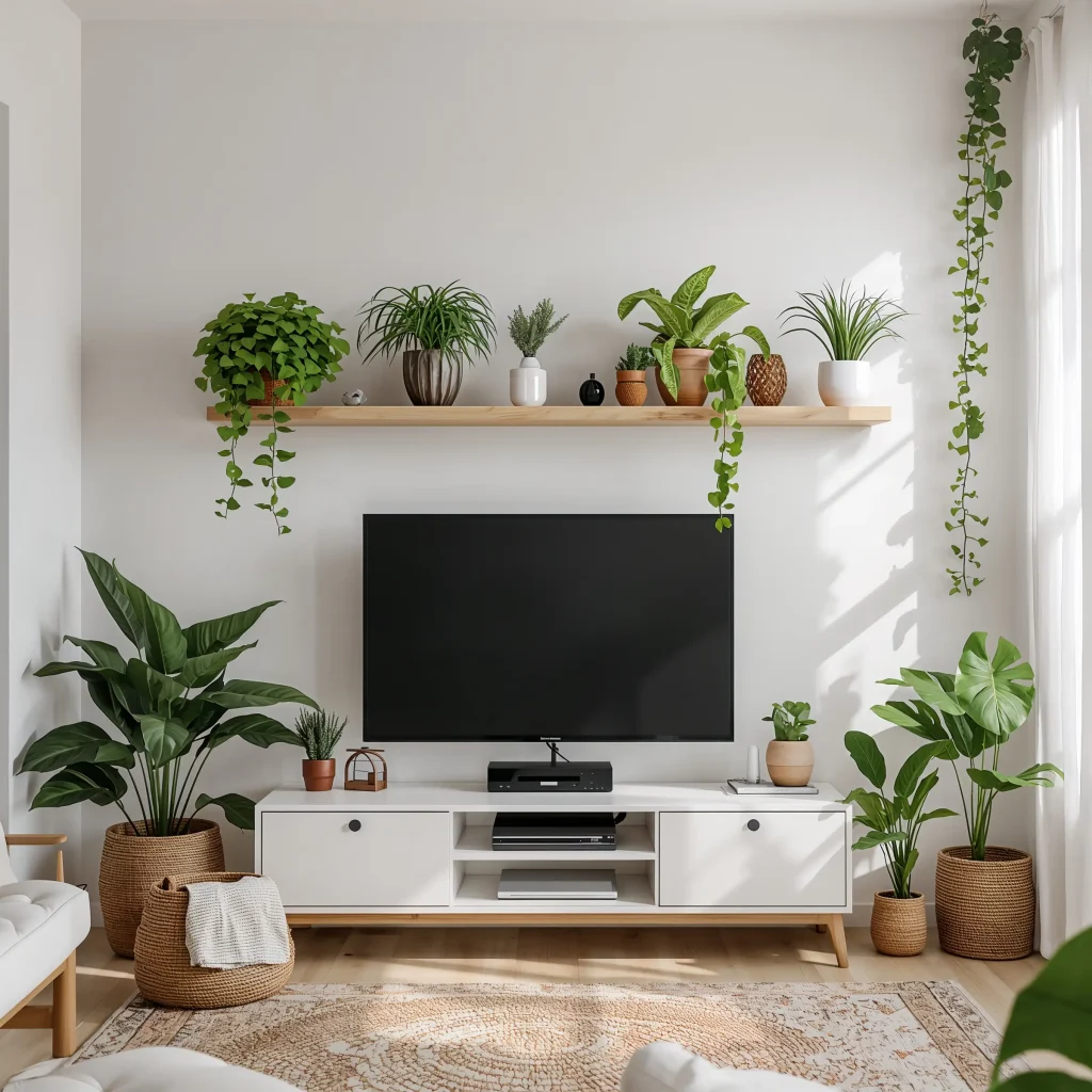 I’ve got a combination of pothos, snake plants, and a dramatic monstera flanking my TV, and the vibe is absolutely chef’s kiss. The greenery softens all those hard edges and makes binge-watching feel slightly less guilty 🙂