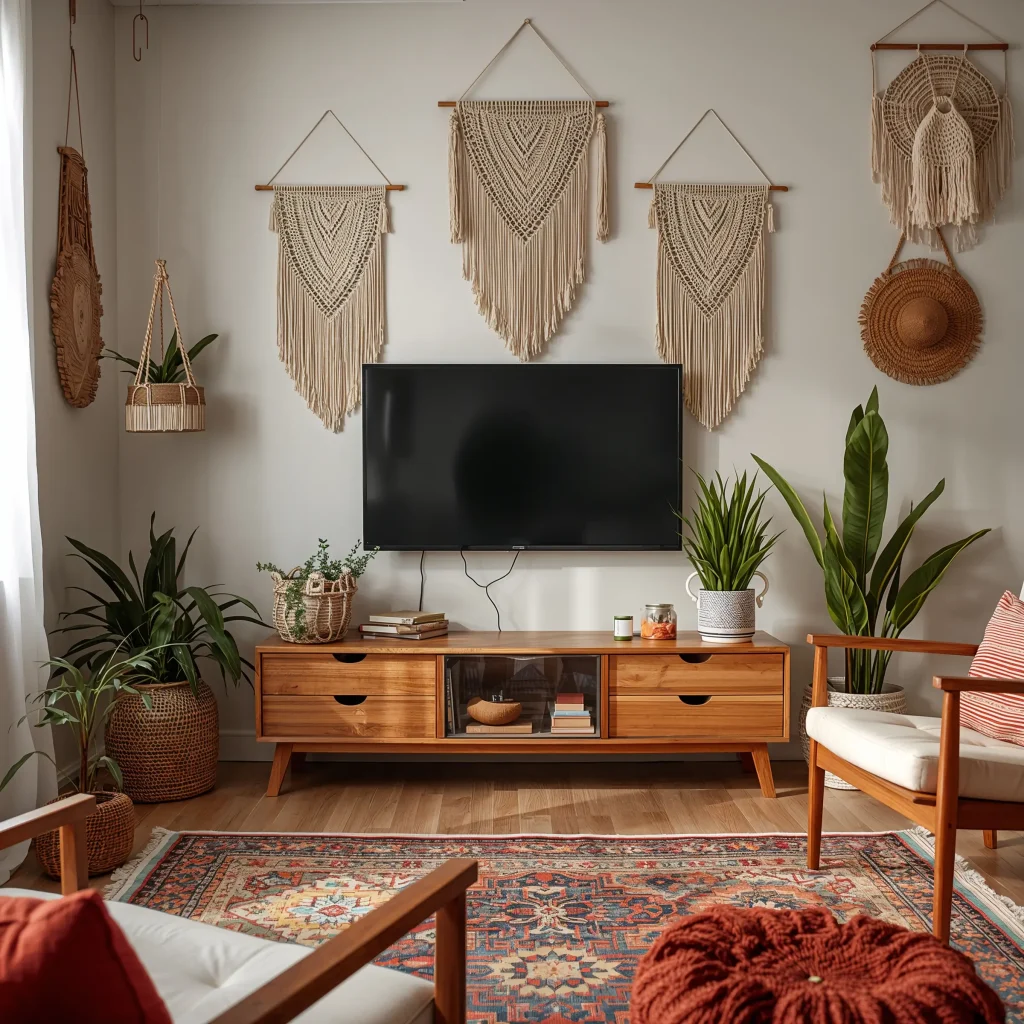 The trick is not going overboard. Too many elements and your TV wall looks like a flea market exploded. Curate carefully and remember—boho is about collected, not cluttered.