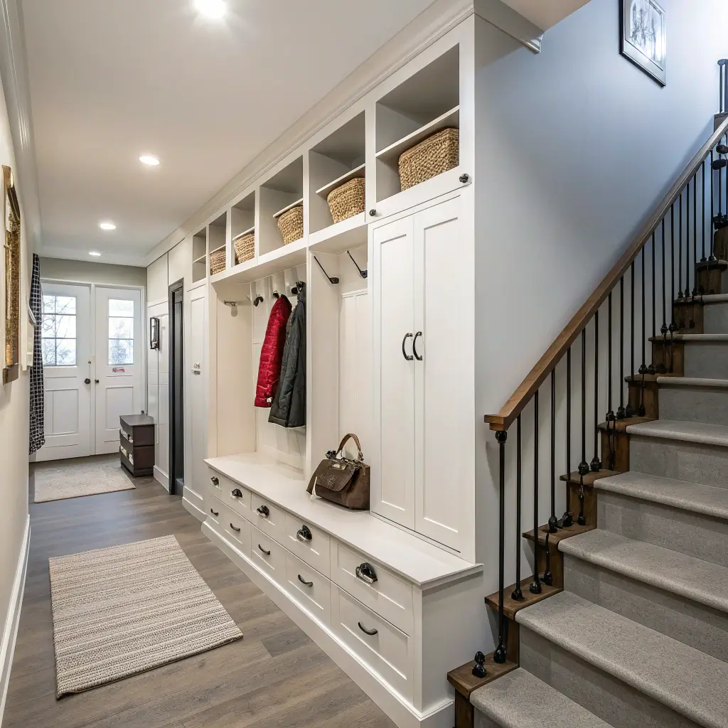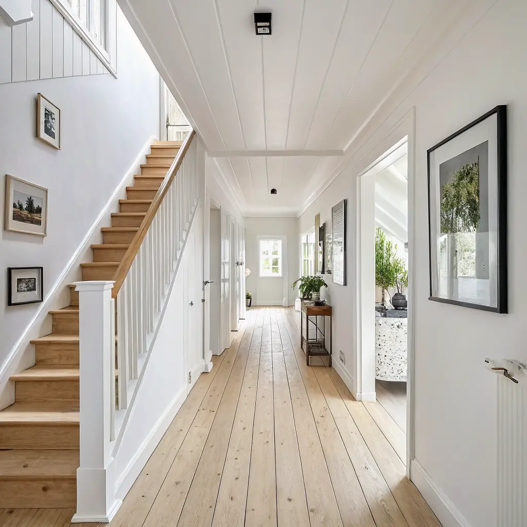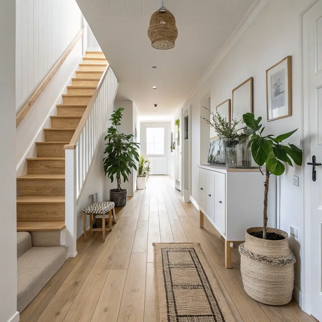 The best part? This look never goes out of style. You can switch up accessories seasonally without repainting everything. FYI, white hallways also photograph beautifully – your Instagram game will thank you.