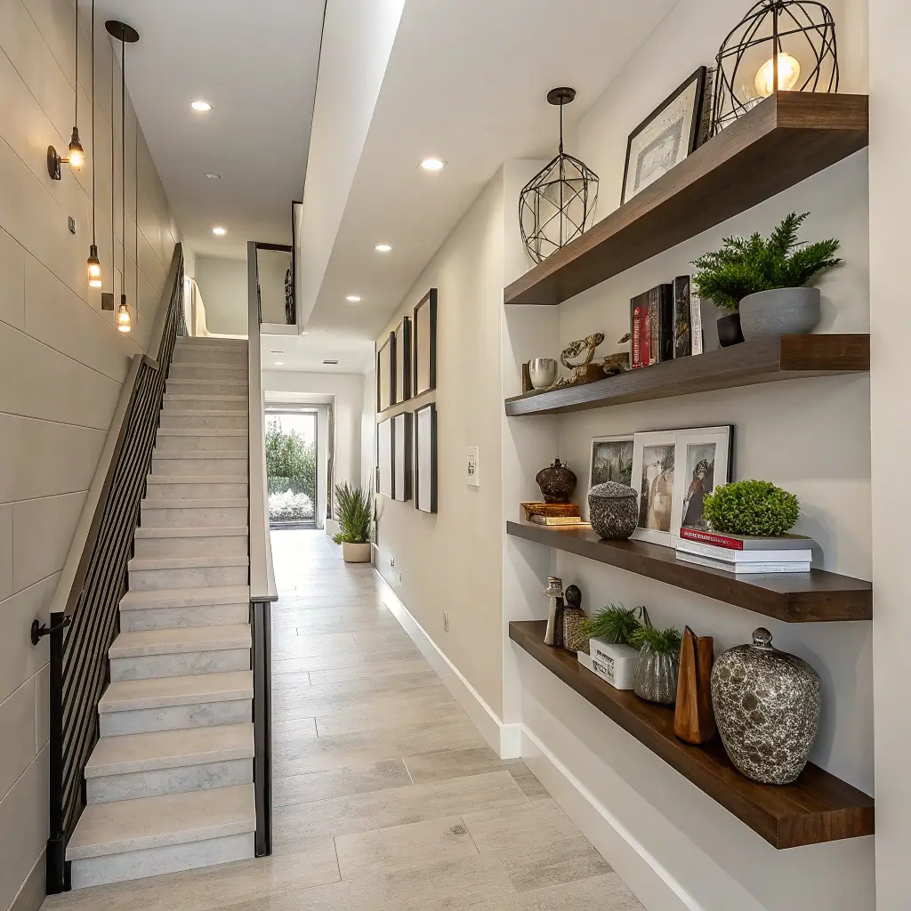 Floating shelves in hallways? Absolutely genius. They add storage and display space without eating into your walking area. I installed three staggered shelves in my hallway, and suddenly I had a place for all those random decorative objects that never had a home.
