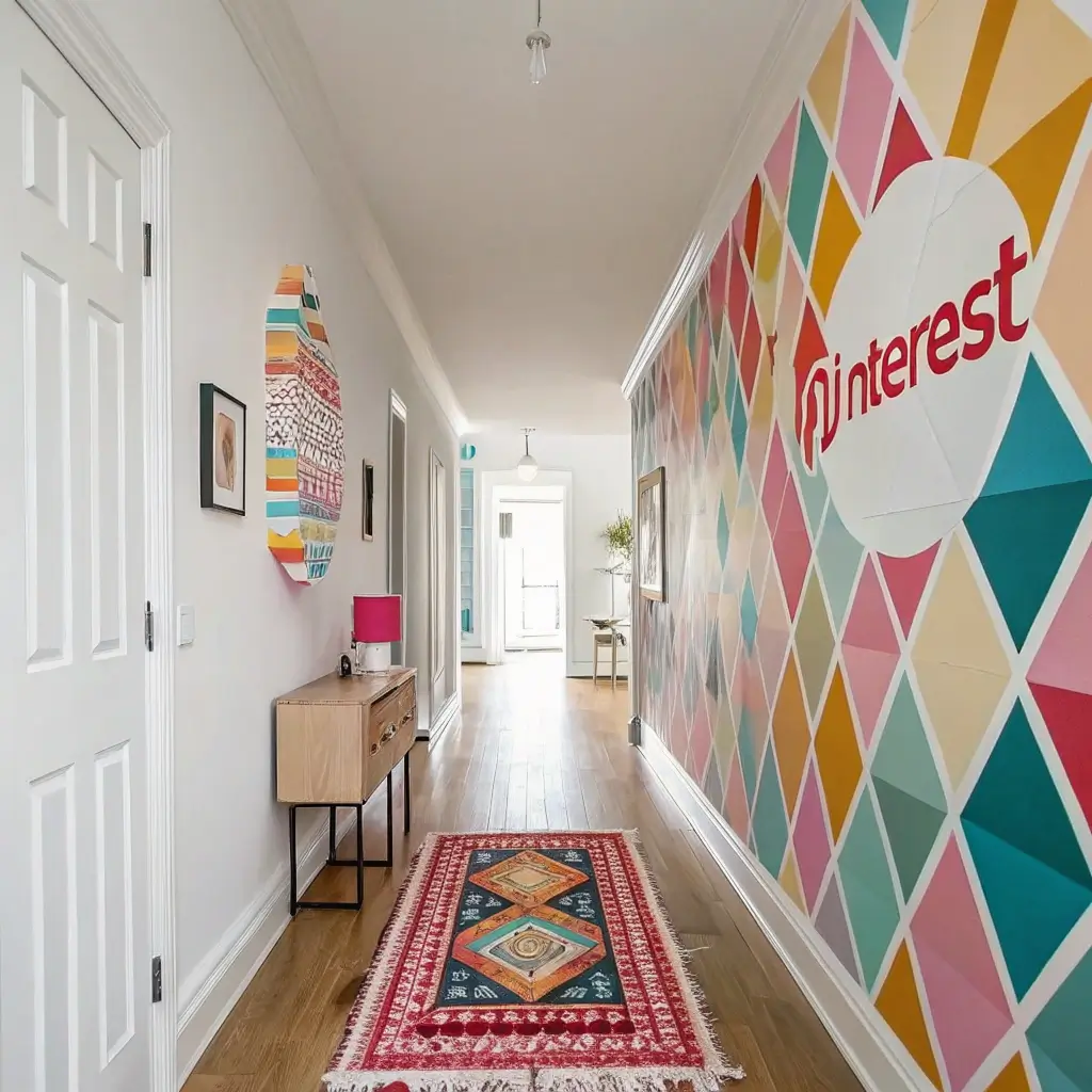 Ready to make a statement? Geometric patterns in bold colors turn your hallway into an art installation. Think beyond wallpaper – geometric patterns work on floors, ceilings, and through decor choices.