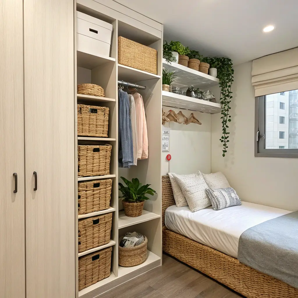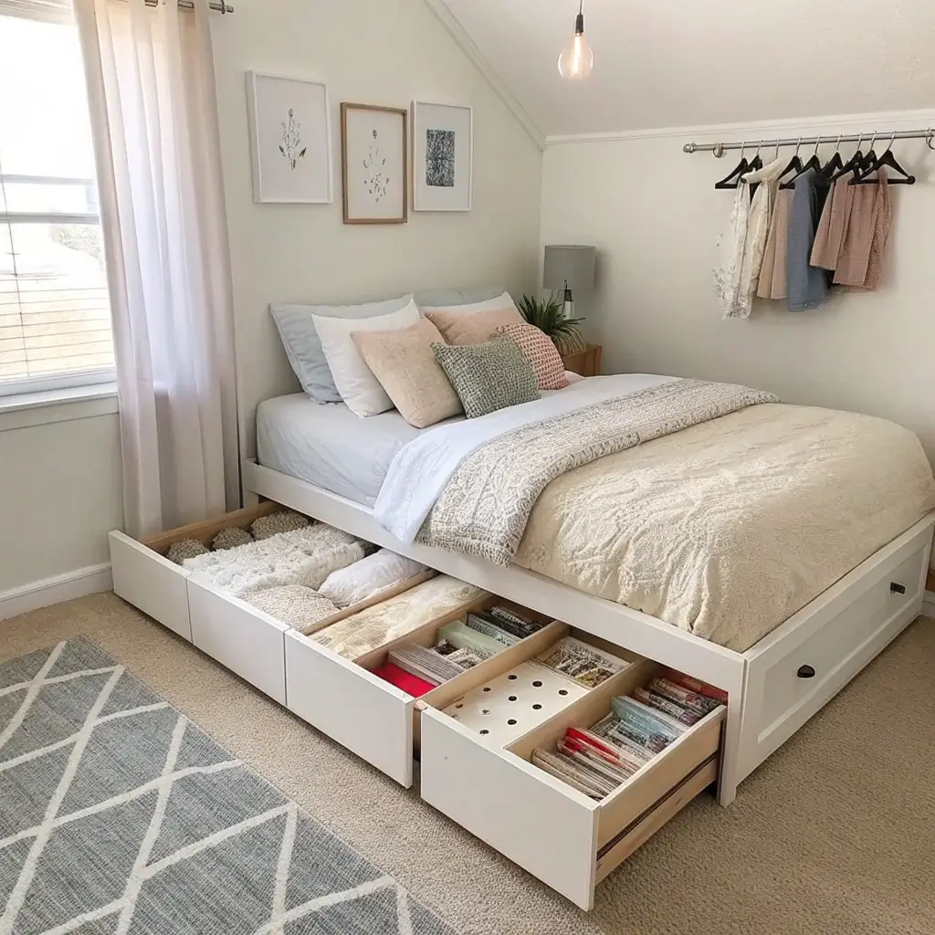 That space under your bed? It’s basically a secret closet waiting to happen. Raise your bed just 6-8 inches, and you’ve got room for an entire season’s wardrobe.