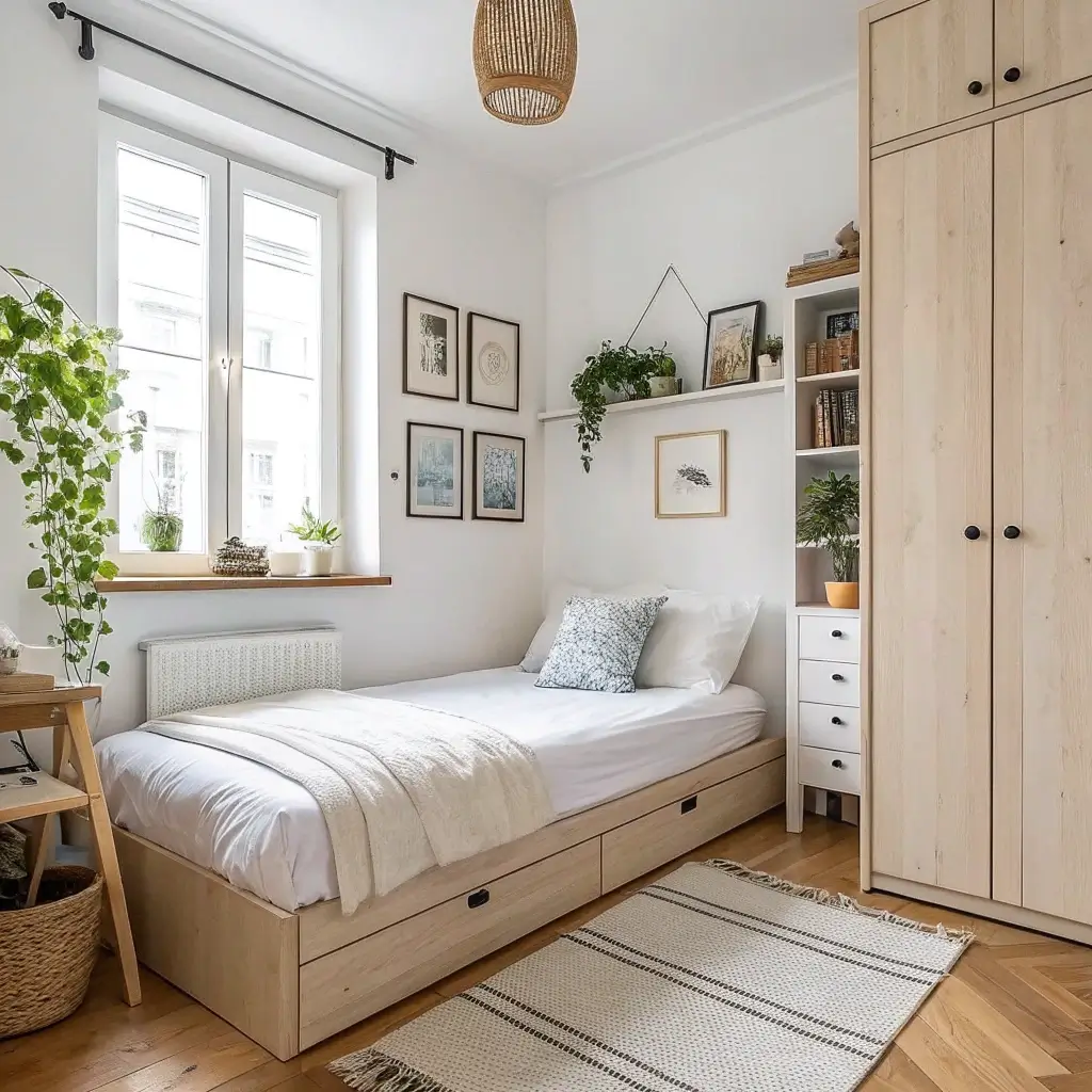 Scandinavian design and small bedrooms are basically best friends. The style’s emphasis on functionality, light, and simplicity makes tiny spaces feel intentional rather than cramped.