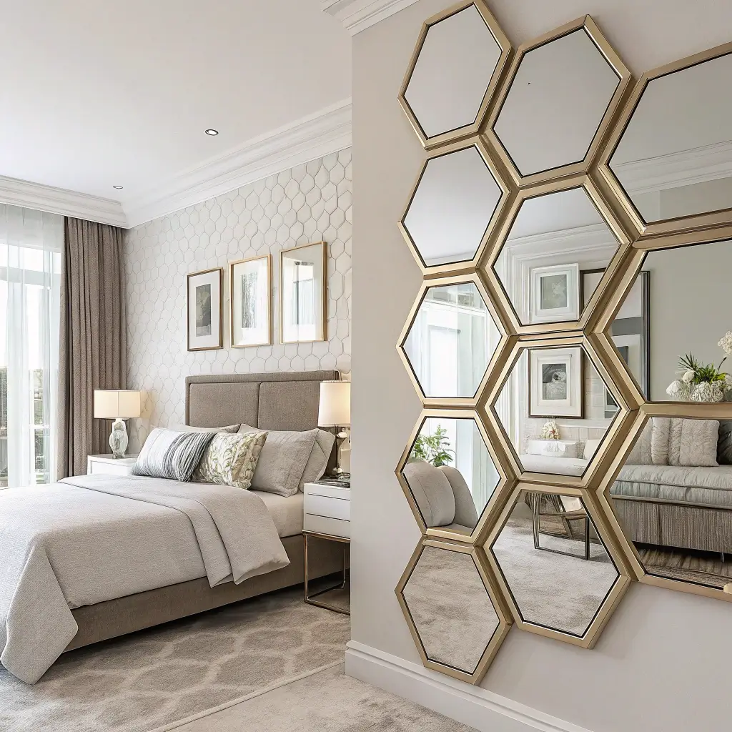 Forget the single mirror above the dresser. Create a mirror gallery with different shapes and sizes. Round, square, hexagonal – mix them up. The reflection creates movement and interest that static art can’t match.