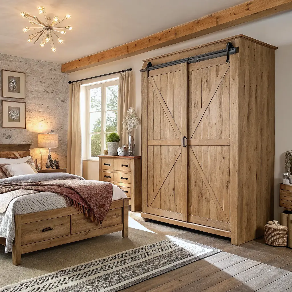 Wooden Sliding Wardrobe Designs with Rustic Charm