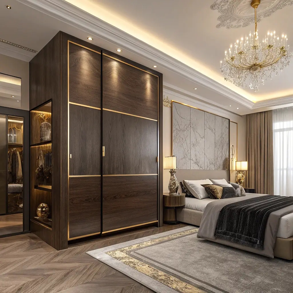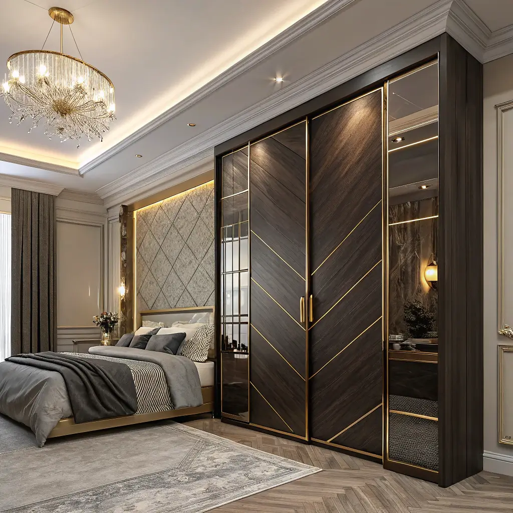 Elegant Sliding Wardrobes with Gold or Metallic Accents