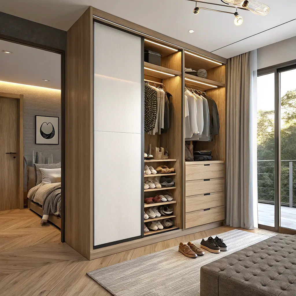 Remember, the best wardrobe design is one that fits your lifestyle. Love showing off your shoe collection? Go for open shelving. Need to hide the chaos? Solid doors with good internal organization are your friend. Want to feel like you’re living in a boutique hotel? Built-in lighting and metallic accents will get you there.