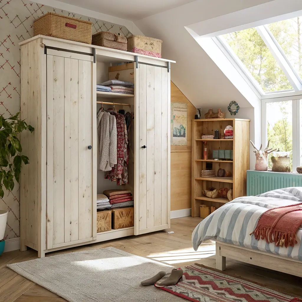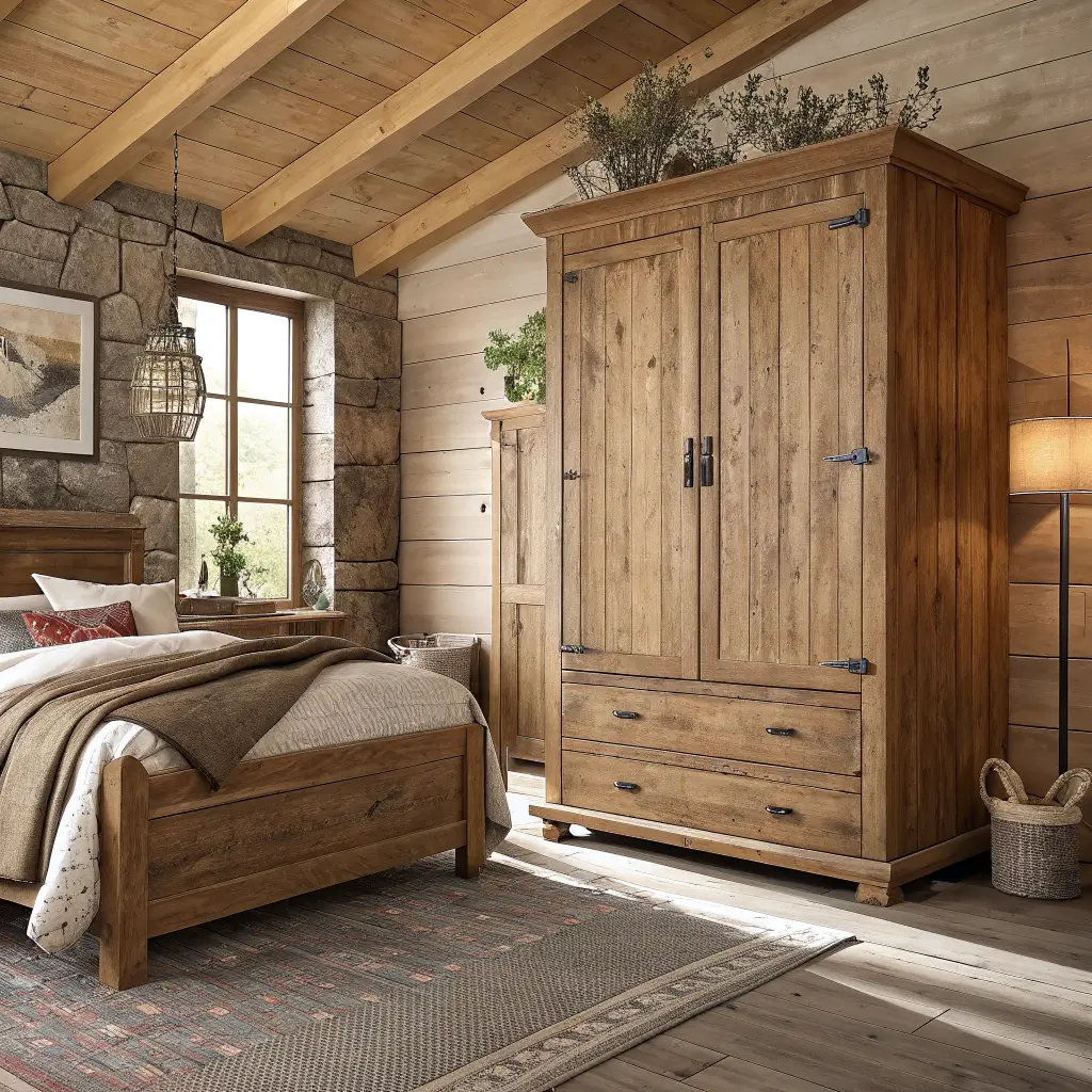 Rustic doesn’t mean rough. Modern rustic wardrobes combine raw wood textures with clean lines for a look that’s both cozy and sophisticated. Think reclaimed barn wood doors with metal hardware – industrial meets farmhouse in the best way.