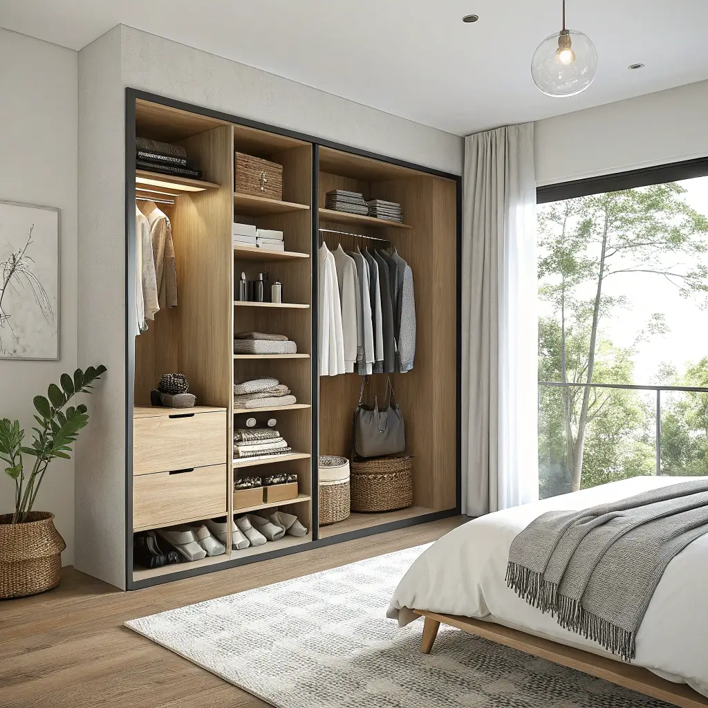 Creating an organized wardrobe isn’t about perfection – it’s about finding what works for your life. Maybe you need hidden storage for clutter, or perhaps open shelving keeps you accountable. The beauty lies in having options.