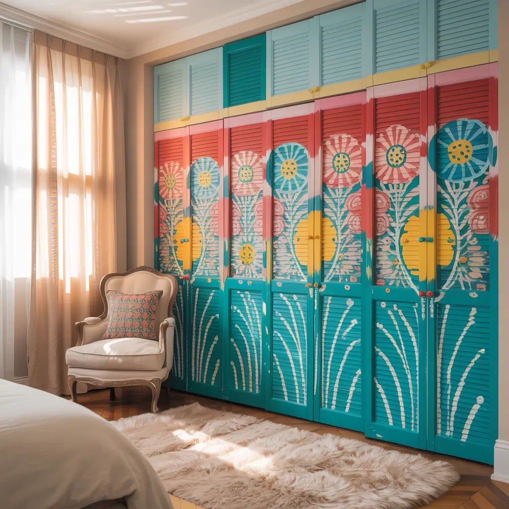 Not everyone has luxury wardrobe money, and that’s totally fine! DIY painting can transform boring shutters into custom masterpieces for under $100.
